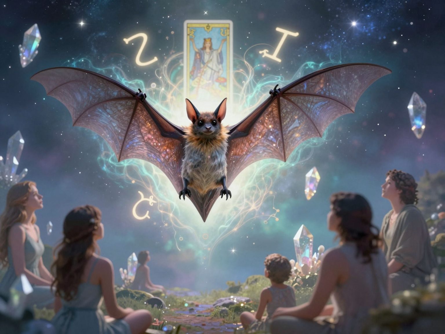 A denevér az éjszaka kapuőre, aki segít átlépni a félelem küszöbét, hogy a sötétség mélyén megleljük saját belső fényünket.