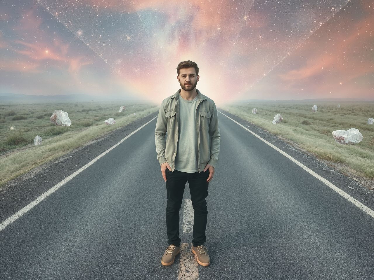 A végtelenbe nyúló aszfaltcsík, ahol nem látszik sem a kezdet, sem a vég, az egzisztenciális kérdésekkel való szembesülést jelenti. Hol tartok? Mi a célom? Ez a kép az élet értelmének keresését és a jövővel kapcsolatos bizonytalanságot tükrözi.