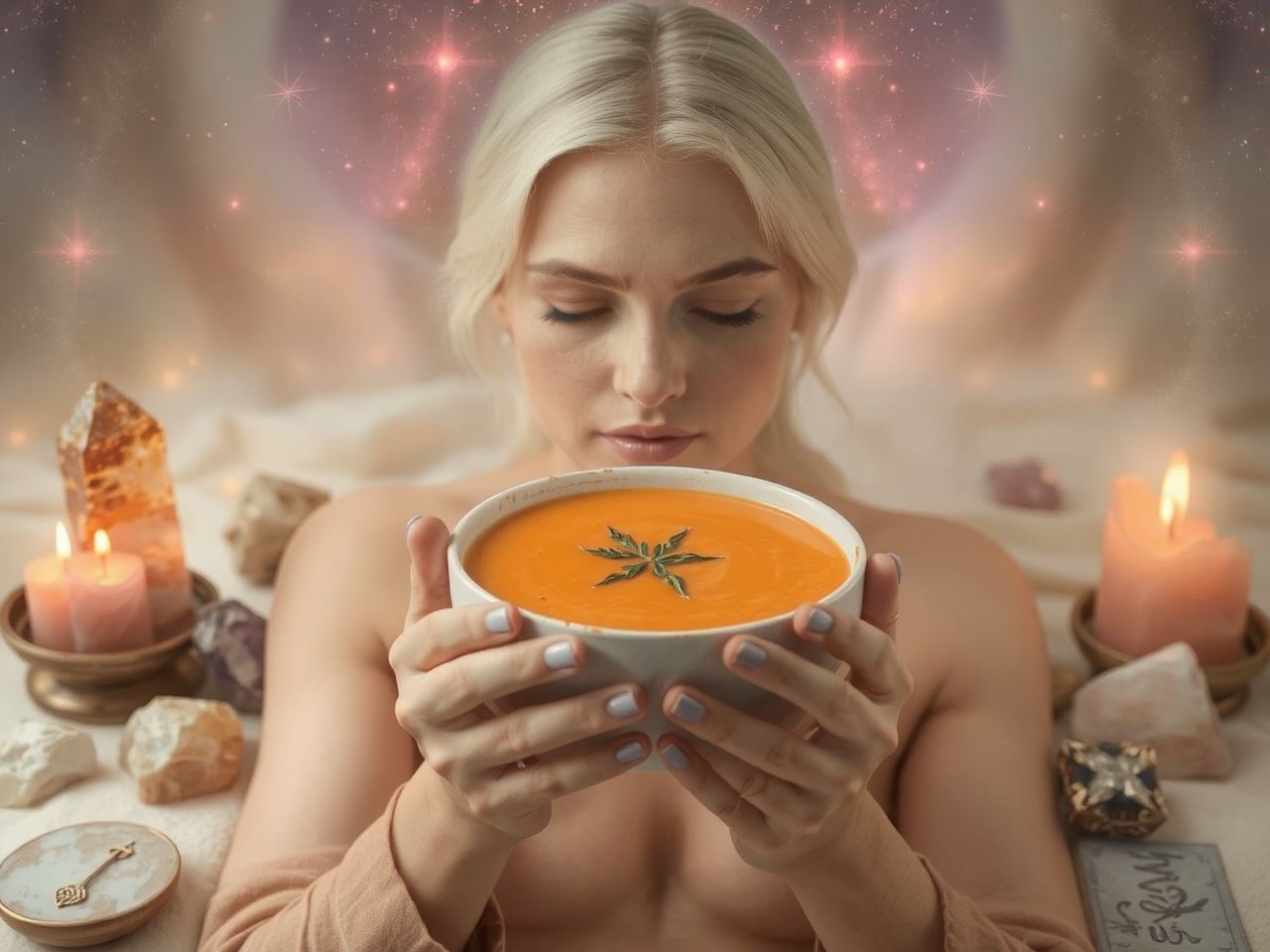 A krémes, selymes textúra az ölelés érzését adja, ami a szívcsakra egyik legfontosabb szükséglete. Ha szomorúnak, elhagyatottnak érezzük magunkat, egy tányér forró, tápláló leves azonnali vigaszt nyújt, helyreállítva a belső biztonság érzetét és a szeretet áramlását.