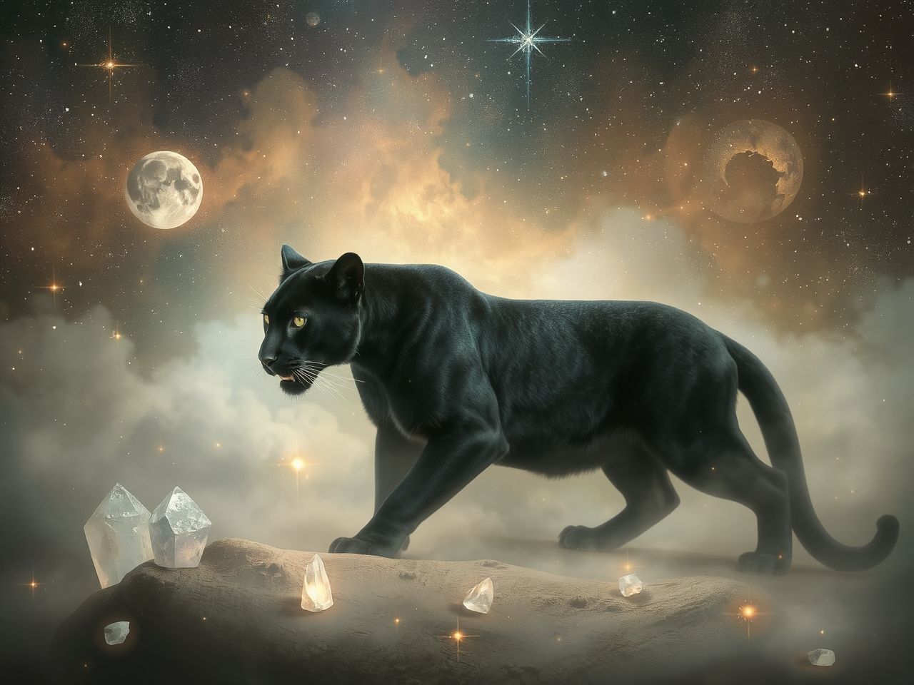 A fekete párduc, vagy melanisztikus leopárd, nem csupán biológiai ritkaság, hanem a spirituális hagyományokban is különleges helyet foglal el. Számos kultúrában a női erő, az anyaistennők és a sámánizmus szimbóluma. Az ősi Amerikában (különösen a maja és azték kultúrában) a jaguár, amely a párduc közeli rokona, az alvilág királya volt, aki az átalakulás ciklusait uralta, segítve a halál és újjászületés közötti átmenetet.