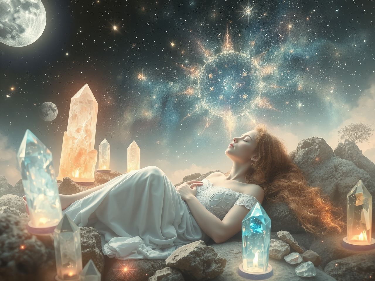 A gyöngyvirág hófehér harangjai a Hold energiájával rezonálnak, amely az intuíciót, az érzelmi mélységet és a tudattalant képviseli. Gyöngyvirággal álmodni a Hold fázisaihoz kapcsolódva különösen erőteljes. Újhold idején ez a tisztulás és az új kezdet ígérete (boldogság visszatérése). Telihold idején azonban a rejtett érzelmek és a titkok felszínre törését jelzi, amely gyakran szívfájdalommal járhat, de elengedhetetlen a gyógyuláshoz.