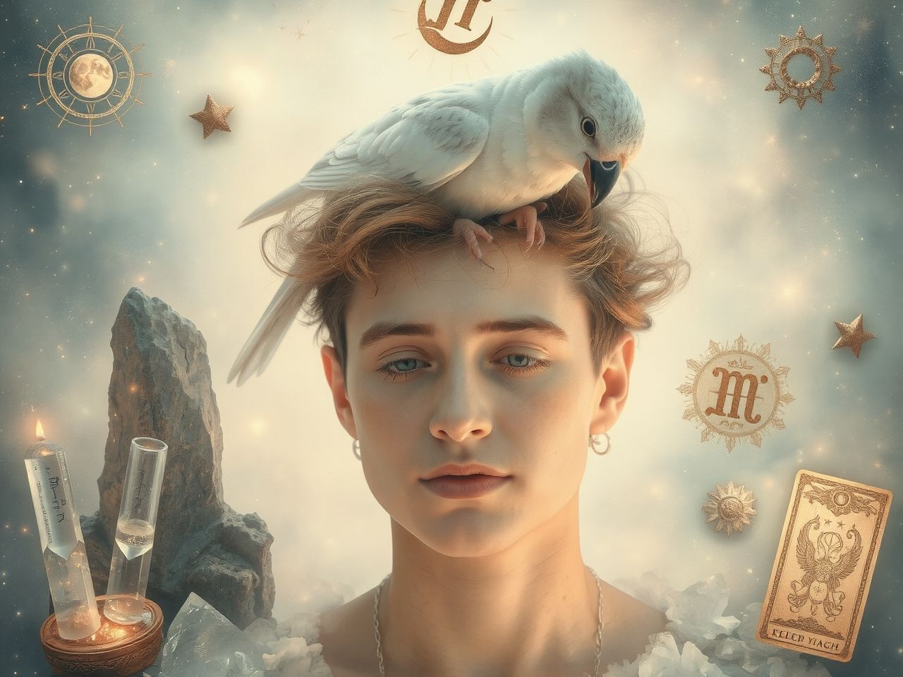 A fejre szálló madár nem véletlen zavar, hanem egy égi tollvonás a sors könyvében. A pillanat, amikor a szellem anyaggá válik, és üzenetet hagy a tudatosság trónján.